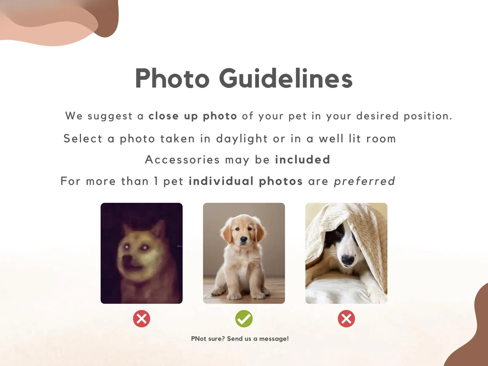 Upload a clear, high-quality photo of your dog face forward, good lighting for best results.